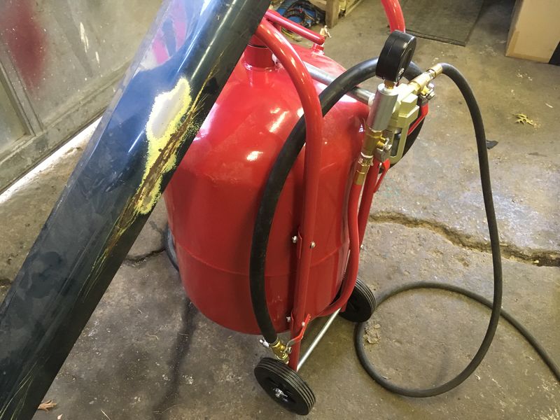 got a big pressurized blaster but need to decide and get the media. started thinking soda, but read about the residue issue affecting paint adhesion. just tried a little shot of walnut shells. worked great, but need to read some more to determine if they also cause paint adhesion issues. found the most recommendations were for plastic bead, but a bit expensive. drag it out to our side lot and if I use plastic lay down a large area of tarps to capture as much as I can. if I go walnut shells, will just let it go into the gravel... soon ..... very soon ...... test was just a few seconds at 90psi. encouraging.
