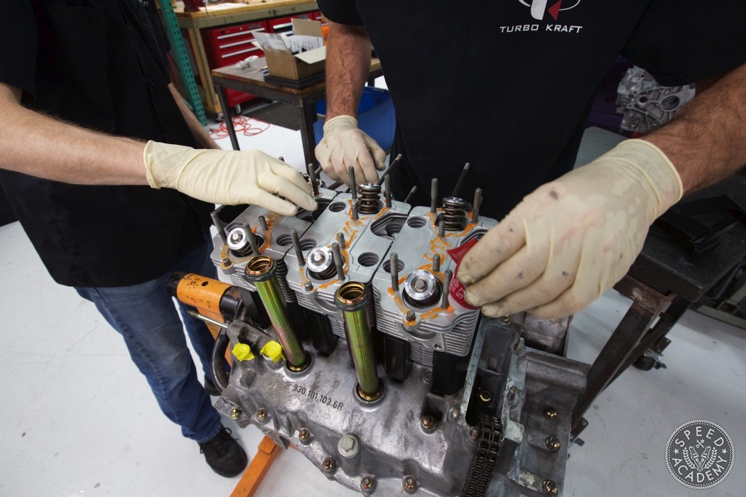 Ive got a set of AEM 380LPH inline pumps which are Bosch 044 style but don't cost nearly as much. I'm using all Vibrant hose and fittings in black. I've been using a lot of their fittings and hoses lately since they are local manufacturer (Toronto) and really love the quality of their stuff. Plus the price point isn't bad either. Last is the Fuel Pressure Regulator from Turbosmart. I've used this thing on a few of my builds and love how compact it is. For reference, Im using all -6AN lines as it's plenty adequate for my EFI fueling needs. http://speed.academy/wp-content/uplo...-turbo-010.jpg Chris sent my heads out to have all new hardware installed. We got larger valves and better valve springs and retainers. http://speed.academy/wp-content/uplo...-turbo-025.jpg Here's the engine where we last left off. The Mahle 3.4L pistons and cylinders are on and we're ready for the heads. http://speed.academy/wp-content/uplo...-turbo-026.jpg Of course, more loctite 574 was used, Chris and Mike use this stuff every where there's a chance of oil leaking which I appreciate so much. I definitely don't want to see any dripping after this rebuild. http://speed.academy/wp-content/uplo...-turbo-027.jpg Can I call this a complete longblock because I'm not up to the terminology with these engines. Anyways, the whole process of timing these engines is really unique, one which I documented for my video series. http://speed.academy/wp-content/uplo...-turbo-028.jpg I bought these headers off my buddy who didn't end up using them on his 930. Apparently, they are Kenny McNeil headers? http://speed.academy/wp-content/uplo...-turbo-029.jpg I really didn't need to change out my Tial 46mm wastegate but figured what the heck, the Turbosmart one is never, more compact so why not give it a try. Plus I really like the v-band setup on it. http://speed.academy/wp-content/uplo...-turbo-030.jpg http://speed.academy/wp-content/uplo...-turbo-032.jpg John, the fabricator over at TurboKraft has been modifying all my existing parts to work with my new setup including my Andial Intercooler which needed some holes plugged and new brackets made up. http://speed.academy/wp-content/uplo...-turbo-031.jpg |