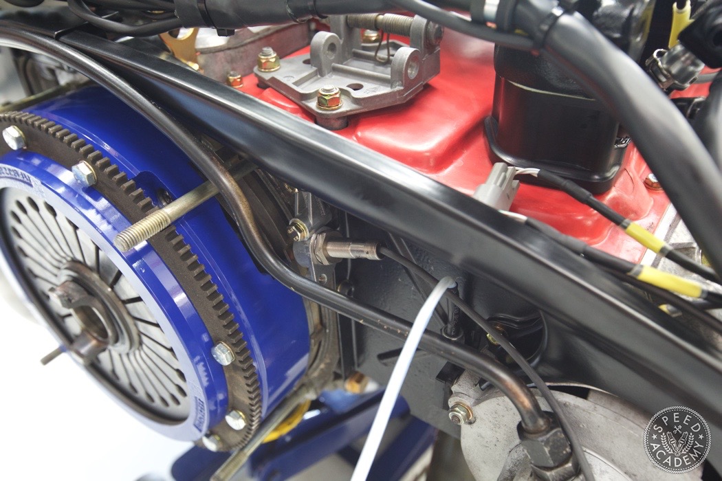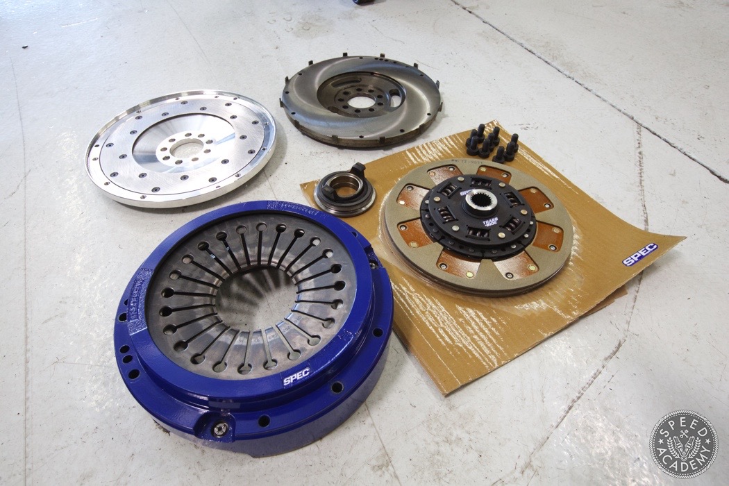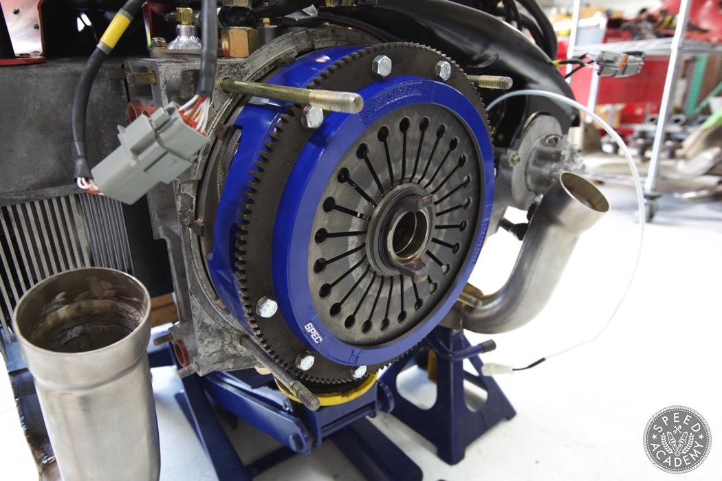 Sorry for the lack of updates. I've been playing catch up ever since getting home so havent had much time to sit down and put together a post... Till now! Let's start with the completion of the engine. We ended up bolting on the GTX 3076R with an .82 Hotside. It fits in the factory location but will require a different intake pipe since the inlet is 4-inches. http://speed.academy/wp-content/uplo...-turbo-062.jpg It also required fabbing up a new hot pipe to the intercooler. A turbosmart BOV was welded up there as well for ease of install rather than trying to fit something onto the intercooler. It also looks pretty damn cool there. I also have to plug the Vibrant Vanjen clamp, that thing is amazing for tight spaces and applications such as this. http://speed.academy/wp-content/uplo...-turbo-064.jpg Here's a good shot of TurboKraft's EFI fuel rails and ID1000 injectors installed. http://speed.academy/wp-content/uplo...-turbo-063.jpg I also ended up installing a bunch of AEM sensors to interact with the AEM Infinity EMS. These will ensure that the EMS has monitoring capable for oil temp, pressure, fuel pressure, MAP and intake temp. http://speed.academy/wp-content/uplo...-turbo-066.jpg http://speed.academy/wp-content/uplo...-turbo-067.jpg Also installed a Turbosmart FPR1200 fuel pressure regulator. I love how compact it is which gave me many options as to where to fit it but we decided on the side of the back of the intake manifold as it'll be close to the return fuel line. http://speed.academy/wp-content/uplo...-turbo-060.jpg For my clutch and flywheel I ended up buying a Spec Stage 2+ clutch which is rated for 575ft-lbs and the main reason for going with it was to ensure smooth engagement. I want to be able to enjoy driving this car without chatter or harsh engagement. I was supposed to use a SPEC Aluminum flywheel which is 5lbs compared to the 9lb stocker but turns out that I need a steel flywheel because of the crank trigger needs pickup points which Chris had machined into the stock one. http://speed.academy/wp-content/uplo...-turbo-068.jpg http://speed.academy/wp-content/uplo...-turbo-069.jpg http://speed.academy/wp-content/uplo...-turbo-071.jpg In order to mate the trans flush with the engine, Chris had to notch the trans so that it would clear the crank trigger. http://speed.academy/wp-content/uplo...-turbo-072.jpg |