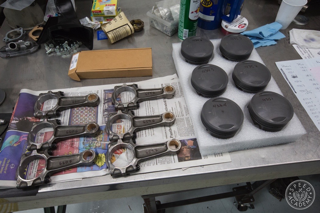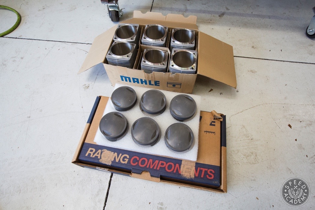 Progress has been fast but the machine shop has slowed our pace a bit, we're still waiting for heads which means the rest of the engine can't come together but I know have a short block! Let me back it up a bit though. I went with the Mahle 3.4L Piston and Cylinder Power Pak because I wanted OE reliability but with a high performance application. This way I get the modern technology of pistons with coatings and modern rings and everything is guaranteed to fit like the factory stuff. ![]() ![]() Just check out how pretty the cross hatching is on these cylinders! ![]() ![]() Before Chris and Mike assembled my rotating assembly, they measured everything and determined what rods go with what pistons to ensure the best possible balance. I'd never even thought of doing this and was reminded again why I left it to the professionals. ![]() And here's my freshly cleaned and polished crank with my stock rods installed. I did upgrade the rod bolts as Chris said they are the one weak point in an otherwise very robust rod. ![]() Mike made sure all the piston ring clearances were correct before assembling them with the cylinders. Again, another attention to detail that I was impressed with because technically they should all spec out out of the box. ![]() When it comes to putting the cases back together, the time spent to ensure there's just the right amount of silicone dabbed onto anything that could possibly leak is staggering. It took Mike and Chris longer to apply the silicone then it did to mate the cases! But here's to having a leak-free engine from here on out. ![]() ![]()