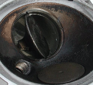 Here is a pic of one of my heads and piston from an "incident" last year. I beleive a valve spring broke causing valve float. The piston then wacked the valve and eventually broke it off. This happened on the track at about 6900 rpm on a 3.2 motor. I put a used head and piston in it and had it running 5 days later. Ran great.