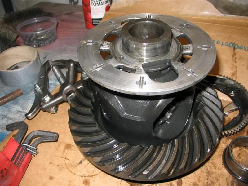 has offered his assistance. Which means a ferry trip for me across to Kendal for the day, to watch Mike put my box back together again. The part I was concerned about was the pre-load on the diff - as I am replacing the pinion bearing this will be changed (pre-load) - and this takes some serious measuring.