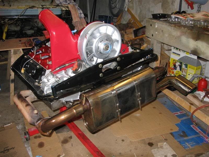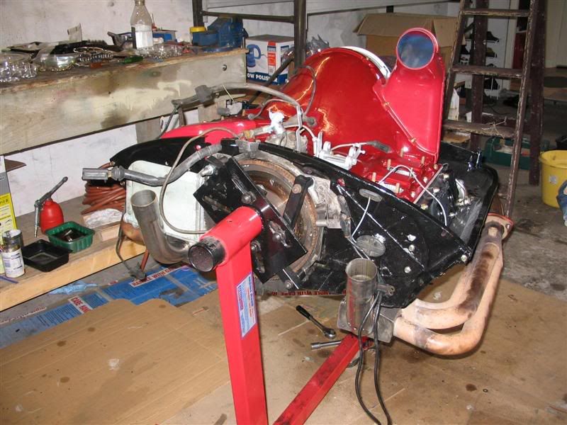 The fibreglass fan shroud and other bits got hit with a burgandy colour, which just happens to be the colour of the interior (cabin).