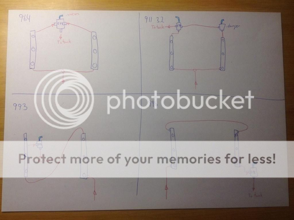 There were several configurations during the years. I was thinking of going the easy route like the 996, but looking at the previous years I wonder why they did all the other configurations? for instance on the 993 the return line exits between two injectors. |