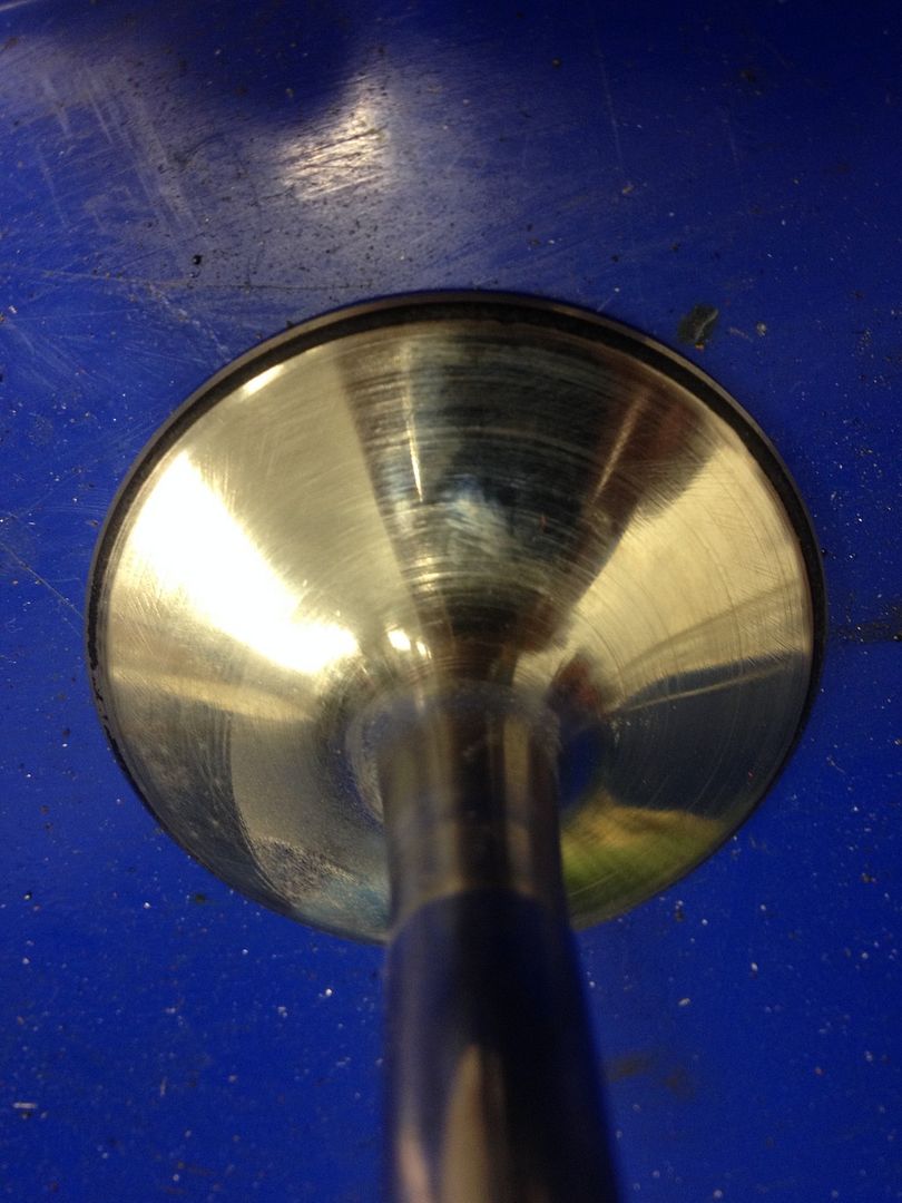 So this must me why i had trouble when the inside diameter on my seats was machined bigger. I Just did a few low mile and untouched 3.2 heads today and that was straight forward and a "easy" job with just a few light cuts to get a clean contact face. Got a good result. So I'm doing it right and my tools are ok. I ended up with 1.5mm face at the top of the valve and after lapping I see that all the 45 degree face has contact with the valve. I just tured the 60 degree light one turn to see that the seat is round so it has the same width all around... so the face doesn't get lower on the valve. The valves still are high in the combusing chamber (valve stem messures 45.3mm).