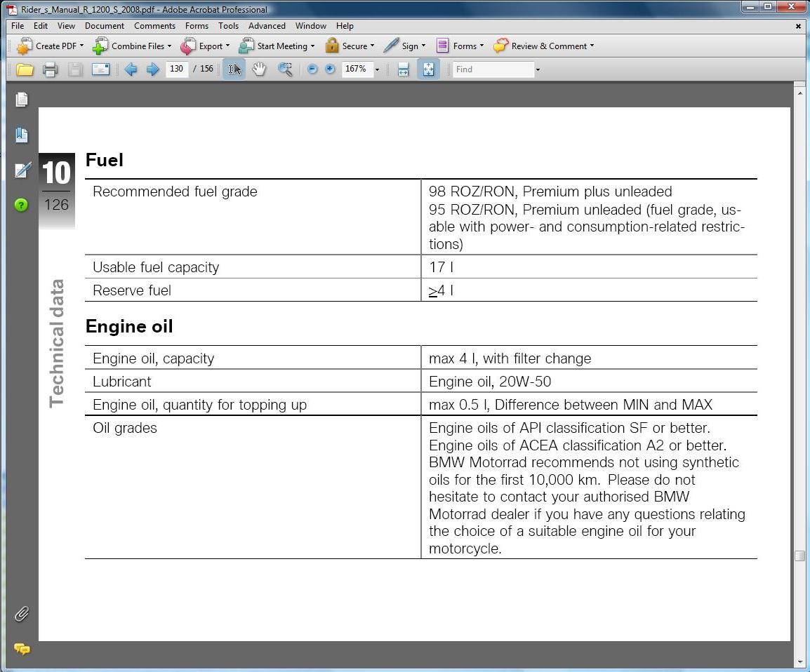 Nah, factory recommendations are here: http://www.bmw-motorrad.co.uk/media/pdf/70583_A1_BMW_POSTER_MCO00066_low_res.pdf