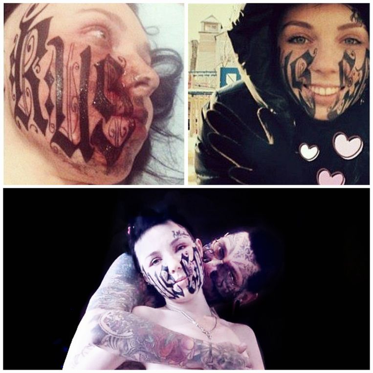 First girl was a national news sensation here. She said she fell asleep during the tattooing.... Stars are all removed now. Second girl is (or was) the girlfried of the tattoo artist (same guy as the starfaced girl) She had his name tattooed on her face... some people