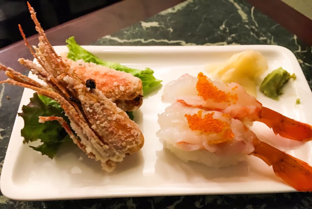 I'd had/tried "ama ebi" (sweet shrimp) a couple of times in Houston. It's raw shrimp nigiri, and then usually served with the heads tempura battered and fried. You eat the heads too.