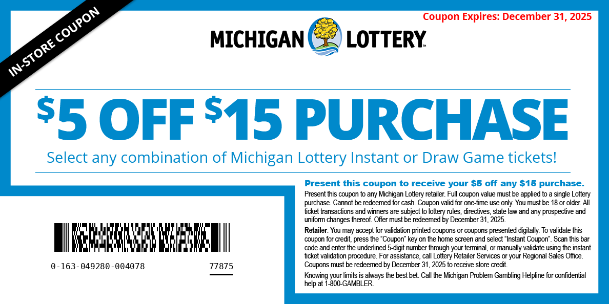 I'll spend $10 for three $5 scratch offs....I could be worth hundreds by this evening.:) Just need to remember to bring a $10 bill with me...no cc allowed. https://coupon1.michiganlottery.com/...6b14699ceea29f |
