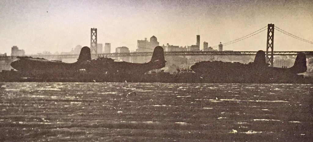 Poor quality shot of the four retired Navy Martin Mars flyingboats at Alameda in 1959, three years before the Canadians came and bought them to use as fire bombers:
