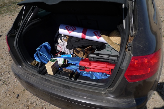 A 2+ hour drive each way, but well worth it. Packed up the car, the boy and the g/f and headed into the CA desert with almost the full arsenal (left the p225 at home for the cats).