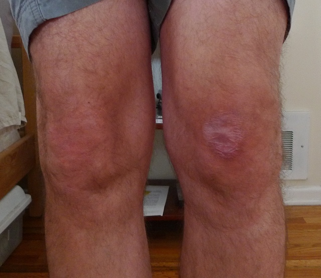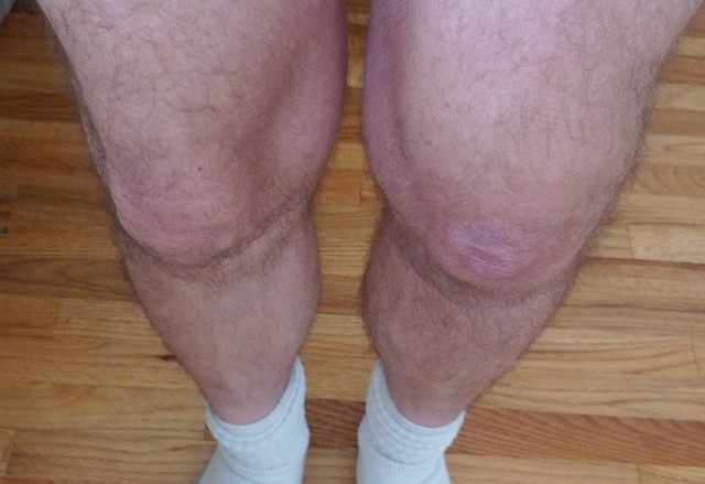 No Sketchers. This thread was worthless without pictures, and will get more worthless with them. Aches like a mother. If I press my finger on the outside of the leg between the side of the joint and patella (a little below midline) it is painful. Poking elsewhere is mostly just puffy.