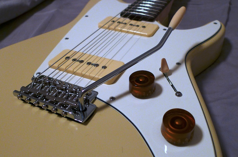 Those are some beautiful instruments. It's nice to see some "boutique" stuff, especially that bass. I only have 1 electric, a Telebastard that I'm putting together right now with a DeArmond gold foil neck pickup ala Ry Cooder. Had to put some nickles under the saddles to raise the strings.