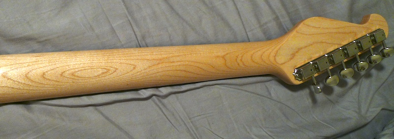 Thanks, that is nice to hear. The neck is a bolt on Warmouth (rosewood over maple, oversized SRV profile, SS frets) that I overlayed the headstock with the same maple as the top layer on the body. The back of the body is mahogany. The pickups are PRS humbuckers.