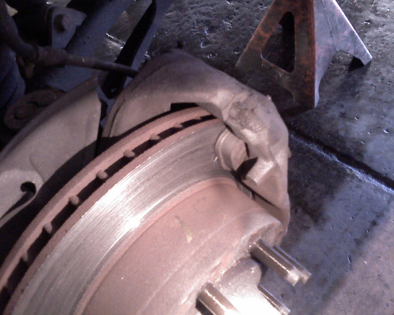 A few years ago, this chick brings a car (used) over that she just got, and she wasn't happy with the brakes. Someone had done a brake job and had left out one of the brake pads on the rear. There was no fluid loss, but the piston and rotor were a write-off.