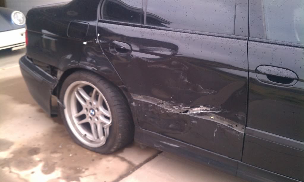 As for repair shops, the claims agent mentioned the BMW certified collision facility at the dealer, and frankly, I expect nothing less. So far so good, just waiting to hear from the other agent. Also, I got a voicemail from Traveller's insurance with a claim #, so it appears that at least the vehicle had insurance and it was still current. whew. It's kinda bizarre...right after we got hit the other driver came over, kept on asking if we were ok, then told us to call the cops, while he was on the phone with someone else. Then he asked if we had insurance...and then proceeded to look at our car and said "that doesn't look too bad"... looks worse in the morning http://i1191.photobucket.com/albums/...e/IMAG0604.jpg |