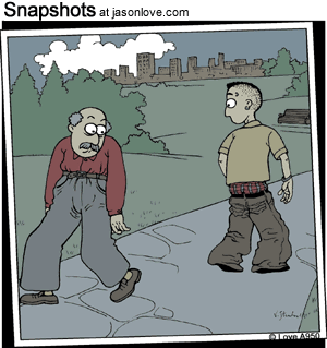 Is the rest of my life going to be pissed-off every time I see some moron with his pants below his ass in the rear? I'm telling you, it just makes me want to biotch-slap one of them. |