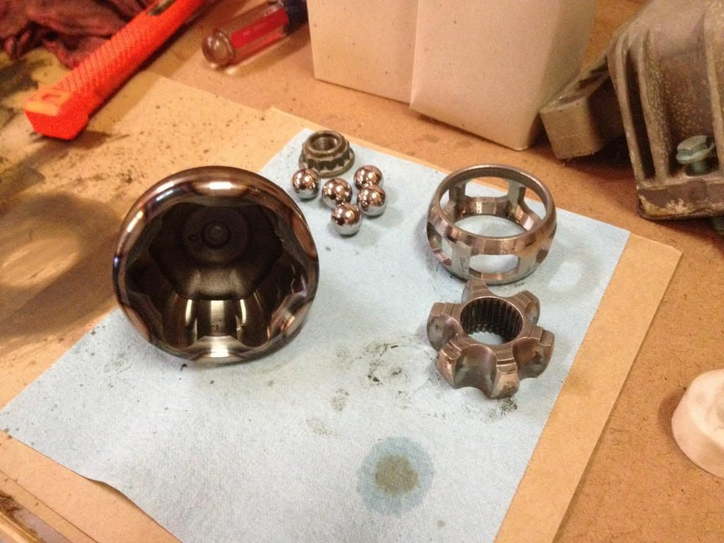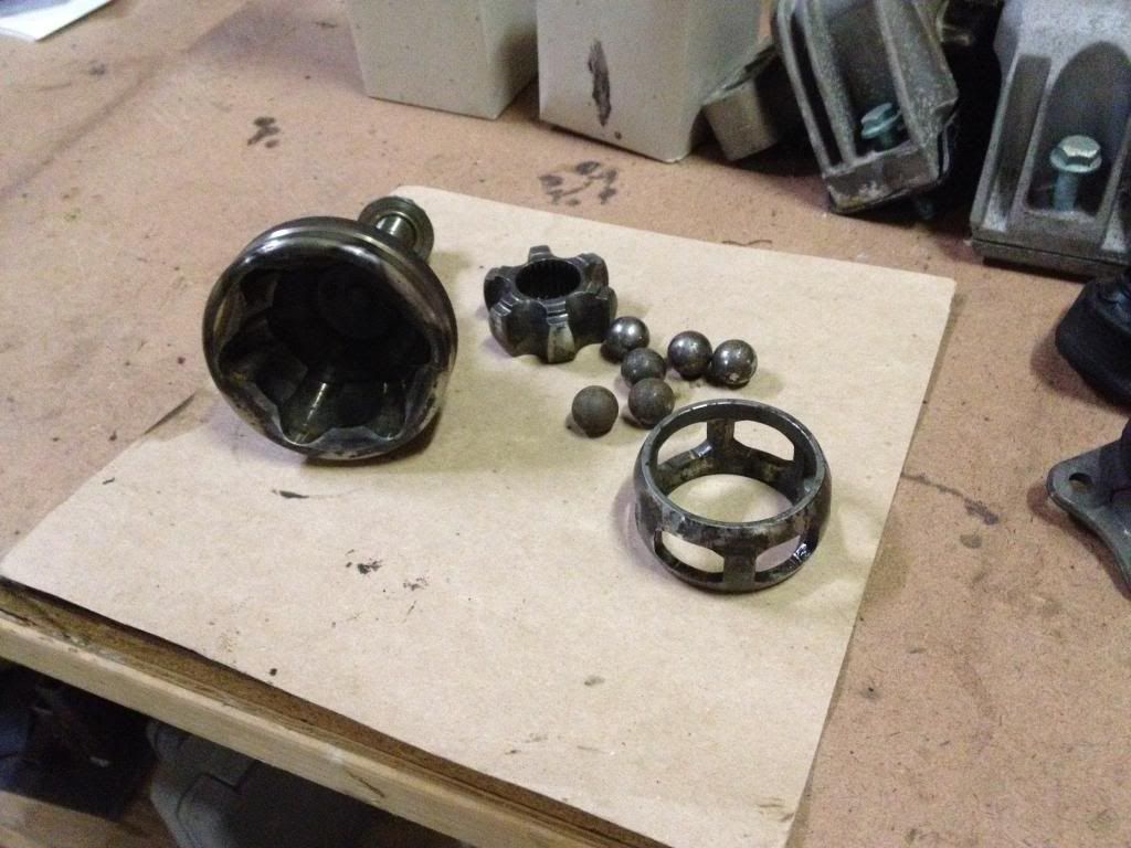 Here are some pics of it in progress.  After looking back at them, I realized how crappy they are and that somehow I missed most of the detail shots... I guess it's because I usually waited to pick the phone up after I had degreased my hands, typically at the end of the day.  At any rate, enjoy...  Here is an example of a CV joint that I was able to clean up and repack:  ...and one that had water in it and was toast:  These next two are of the fuel injector electrical connectors. The original ones were so brittle when they were removed that they all fell apart. I found an connector vendor that sell new ones... well, they are Denso for a Subaru (I think) but they are essentially the same and worked great.    | ||