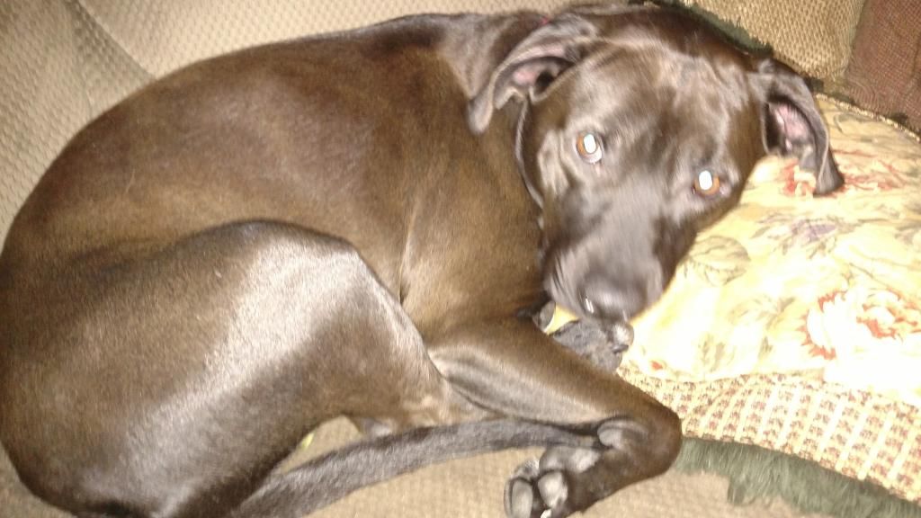Let me introduce Queen Elizabeth II the Second. 7 year old Female of Pit and Yellow Lab mix. Think Miss Doubtfire. Adopted her from a rescue shelter. My Llamas Approve. I could learn much from a chillin' "just rub my tummy" lifestyle. ![]() ![]() ![]() There is just something about getting a new dog at home, it's been a three year absence for us......