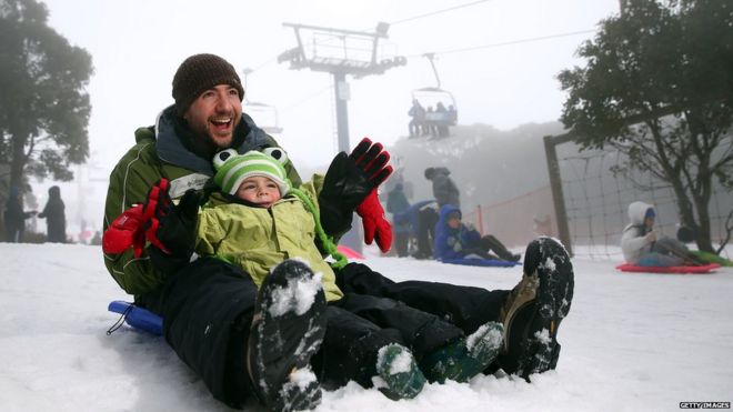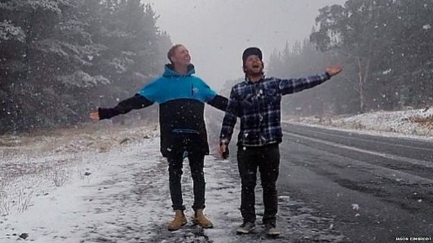 ![]() South-east Australia has shivered through some of its coldest weather in decades, thanks to an icy cold snap. Strong winds and snowfall hit Victoria, New South Wales (NSW), and even the "Sunshine state" Queensland saw snow. Ipswich councillor Paul Tully drove three hours across the border so his son could see snow for the first time. "We got up at 2.30am in the morning because there'd been a number of false starts in the past to take him to see his first snow," Mr Tully told the BBC. ![]() ![]() LINK
