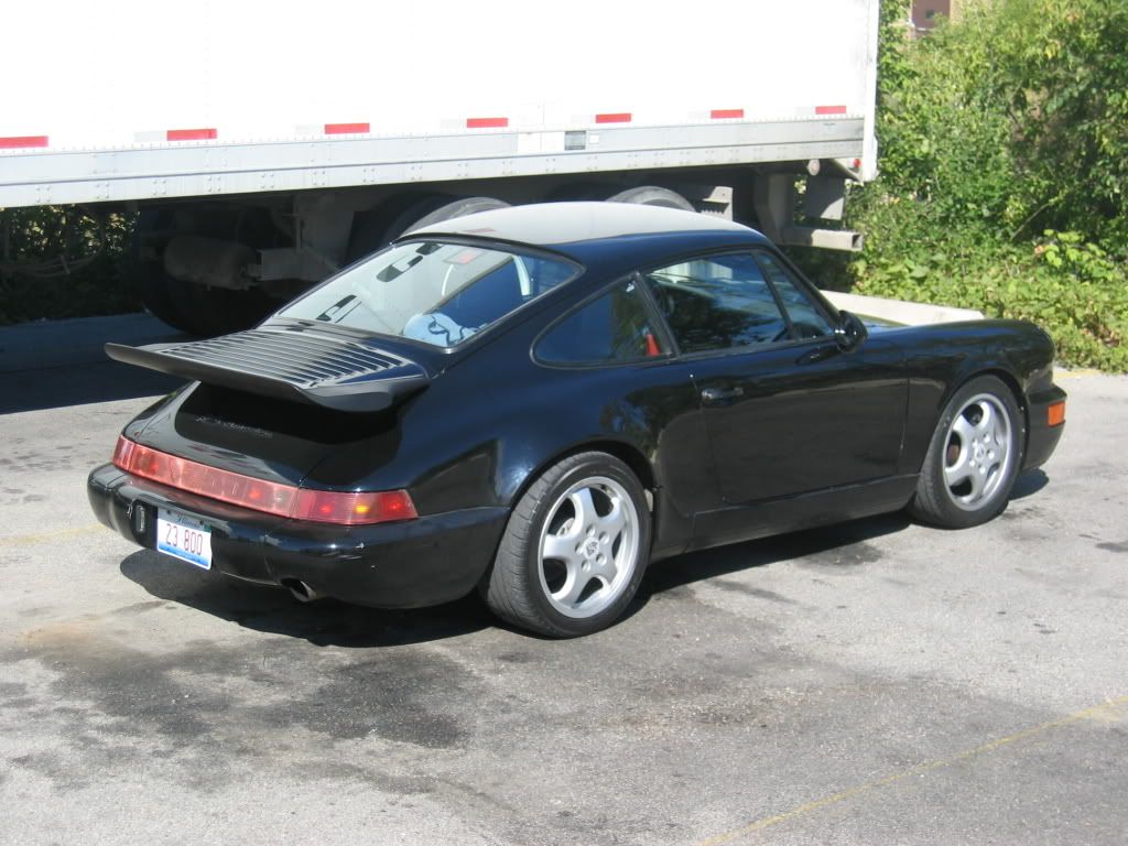 This car had a salvage title. I say "had" because the car is in Germany now. That title probably got washed real good. See that big 3/4 in spacer in the rear? That was necessary to center the rear wheels. No spacer on the left side. The car drove fine. A PCA instructor drove it in anger and said he couldn't tell that car car had any issues.