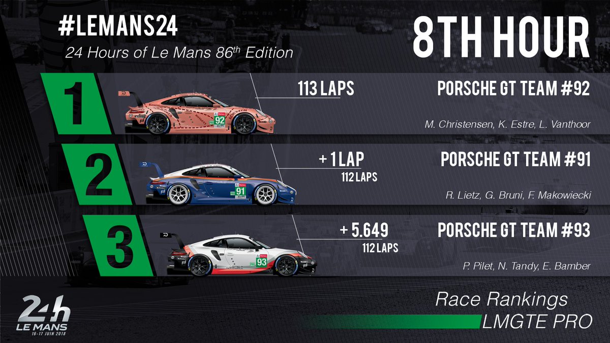 Way too early to be bragging about positions , the night kills LOTS of cars so let's see where we are in the morning . Having said that GO PORSCHE :D