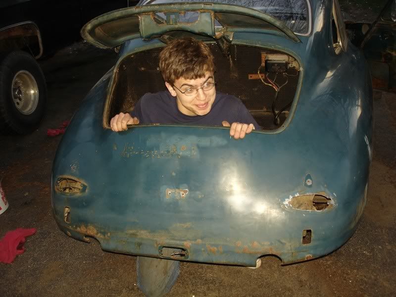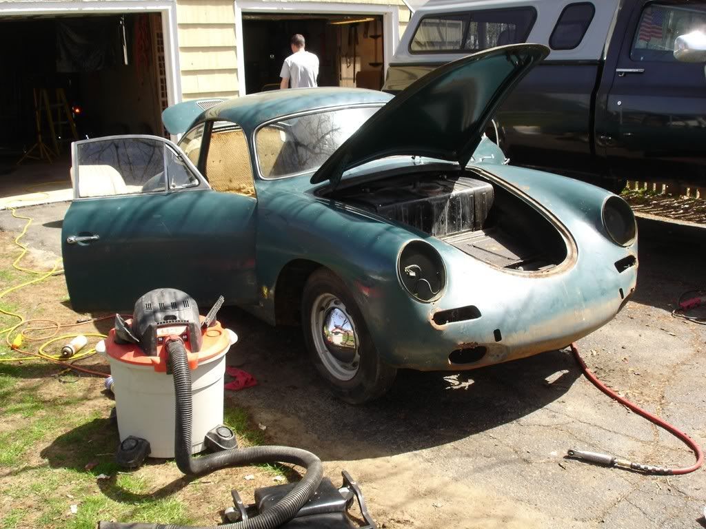 Like I said before the car is a 1962 356 B. The car was stored in a small barn partially exposed to the elements from about 1984 till 2005 when it was moved to a slightly better storage situation with my uncle in Connecticut. Given the storage situation the car for sure needs floors, an engine rebuild, and everything needs to be sandblasted. There is very little rust through on the body other than the floors, and only one major dent just ahead of the passenger side door. Here are some pictures to give you an idea of how the car looks, the pictures are from 2007, but not much has changed since then: ![]() Yours truly trying to look cool with the car ![]() ![]() Stripped, as it has been for several years now ![]() The engine coming out. It can be cranked by hand but not started or turned over. ![]() A small idea of the poor state of the floors ![]() One Chris-power! For all its issues the panel gaps on this car are still tighter and more consistent than those on my 1998 VW. So time for a few questions: 1. Where is the best place to get floor pans? This site has said temporarily unavailable for some time now. 2. Brakes: Upgrade to discs or are the drums adequate for normal driving, and some more aggressive driving? If not, what is the most cost effective/performace effective option for an upgrade? 3. HELP. I need to know where to start!!! |