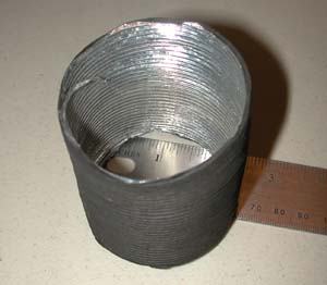 I recently acquired the inlet box, fan, controls, etc to restore the fresh air ventilation system. There were only scraps of hose attached, however. It appears to be paper with an aluminized inside coating.