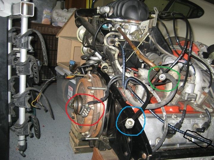 But basically you disconnect the shift coupler in the tunnel, put a jack under the engine's rear, and pull the two rear engine mount bolts. You then carefully lower the rear of the engine, watching various wires and hoses as you do so. As soon as anything looks like it is getting taught, stop, maybe jack back up a hair. Is something accessible is the stopping point, like the 14 pin electrical connector in the right rear, you can just pull it. This lowers the intake stuff on the front of the engine just enough to give you a lot more reaching room back there. Don't leave it sitting this way over night without putting a solid block or jack stand under the engine - jacks sometimes slowly leak their pressure and drift lower over the span of 8 or more hours. |