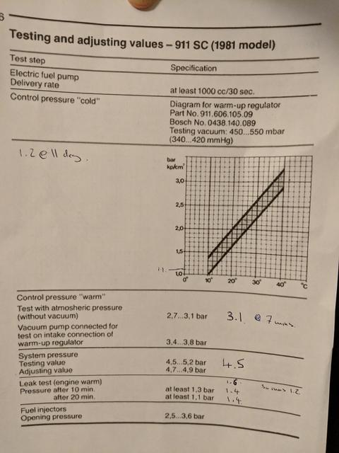 My car is a '78SC but with a later, '81 Euro 204hp motor running air filter and headers (no cat or O2 sensor). WUR is an 089. I've read lots on this forum about making your WUR adjustable and all the pressure specs so I did just that. ![]() ![]() I've done the work and set the car up and my specs are as follows: ![]() System pressure: 4.5 (spec 4.5 - 5.2) Cold control pressure: 1.2 @11degsC Warm control pressure 3.1 (spec 2.7 - 3.1) Leak down 1.4 after 20mins WUR is rebuilt and heater element is in spec and working. AAR is fully functioning and tested. New accumulator New fuel pump New fuel filter Car starts and runs and drives well but is FLAT and down on power compared where it used to be (when it ran horribly cold but went like stink). So, I'm after advice (have done a search but can't find anything solid) as to where I start and where to go after: 1. System pressure is on the bottom of spec @ 4,5 - Do I re-shim the control pressure regulator? 2. Do I adjust the WUR to lower warm control pressure thus enriching the mixture? 3. Am I in spec so fine adjust on the mixture screw? Appreciate your thoughts and feedback before I make my next move. Cheers Rob. Last edited by racer86; 03-06-2019 at 06:51 AM.. Reason: Getting the pics working! |