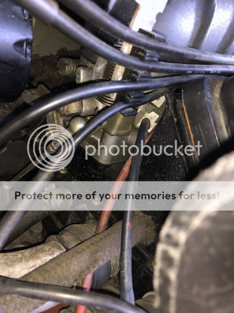 1) Shows the Vac T Fitting (1 port to throttle body, 1 port to WUR, 1 port to vac cap ![]() 2) Shows the vac source from throttle body (Dark Blue line, Red line goes to spark distributor) ![]() 3) Shows this hack of a vacuum cap (will be fixing asap) ![]()