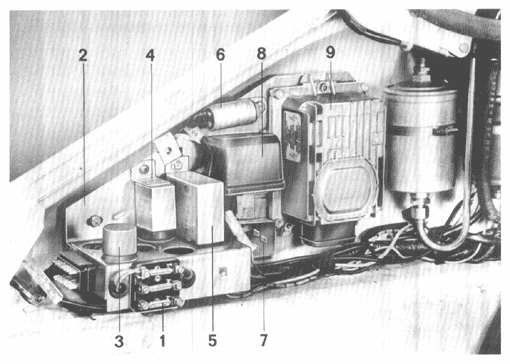 ![]() LEGEND 1 Tail fuse box 2 Regulator plate 3 Air flow sensor / charging pressure relay 4 Delayed ignition cut-off relay 5 Two stage rear window defogger relay (not applicable to 1978 ) 6 CDI control unit capacitor 7 Radio shield 8 Voltage regulator 9 CDI control unit So what we're talking about is relay number 3, correct? Not having additional information with me it seems that this relay controls 'pressure' of something, my guess based on JW's comments is the pressure of the fuel system. The control is based on 'Air flow sensor' input, which means if this relay (which was removed and put back during recent engine swap BTW making it a prime suspect) was to go wonky, the symptoms I have described might result (fuel pump on sometimes when engine not running, fuel pump cutting out when engine heats up, etc.). Is there a way to bypass is the next question as now when she shuts down I can test the theory! Cheers (again!)