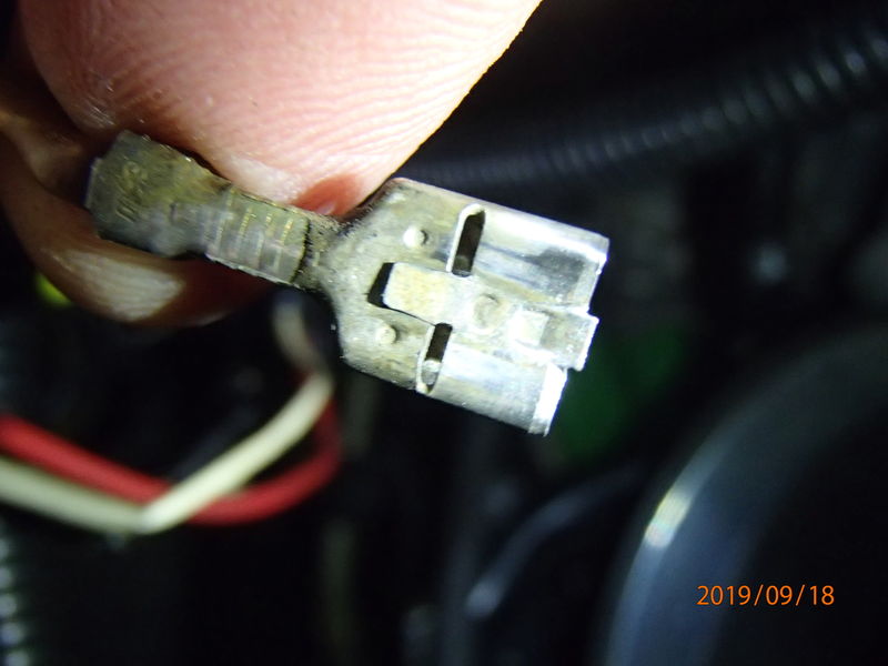 Let the car idle in the garage for 5 minutes and the voltage was a constant 13.5 volts. 15 mile test run, and all ok (the voltage reads lower with headlights on, but that is what it has always done, 12.8v at the cigarette lighter). Pics below. The VR I am running now is the shiny metal one I got from the local Irish auto parts store. I also show the connector that got loose, pulled out. I had polished it up before this photo, but had not bent the tab out yet. I am not sure what VR I am going to run with long term. I should test out the VR (black plastic one in pic) that was installed before this problem occurred. We will see if I get that done. Thanks for all the help guys, and if anyone has a recommendation for a VR, let me/us know.