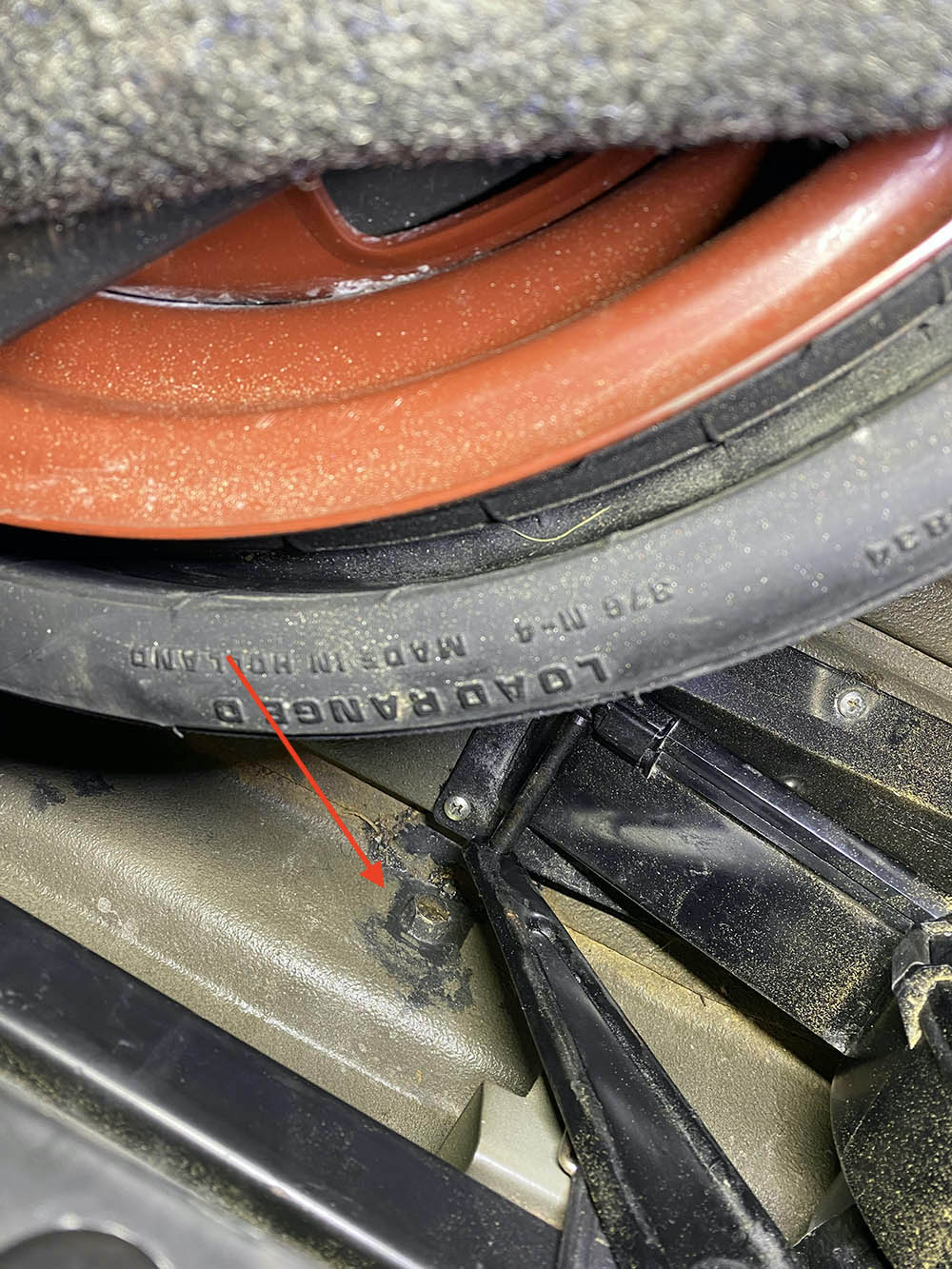 Here's a pic of the nut from the bottom of the car (protection bar as well) ![]() And the frunk, which I assume is the bolt coming through: