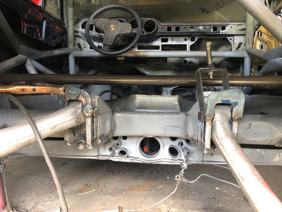 The last trip was a success, she said yes! And now the race is on to get the car at least close to done before we get married. ![]() but back to the car.... I must have 4 solid weekends getting these ERP spring plates fitted. Once finally getting everything to bolt on, I had to dent the chassis quite to bit to get clearance for the toe adjuster nuts to spin freely...... what a pain. I sure hope the raised roll centers help noticeably with squat and roll oversteer because they have added a TON of work. ![]() Now that they fit, off they came again for drilling the old toe adjuster hole for the JWE swaybar. ![]() and just like that it is a roller again!!!......... if but temporarily. Bonus news, the wheels are pointing the right direction with the ability to get some toe in still! LOTS of sweeping of the shed and vacuuming out of the car after nearly a year's worth of grinding, cutting, and welding dust. ![]() In order to fit the new swaybar mounts, I mocked up the gearbox and after all this work, I am happy the G50/01 also fits! Knowing what I know now, I don't know as I would do a torque tube swap again. There is a reason SBH G50s are a thing but I wanted to be able to use all GT3 clutch and flywheel parts and I think I have achieved that other then come to find out modifications to the bell housing will be required to fit the late model starter..... more on that to come. ![]() ![]() Using the JWE high clearance swaybar mounts I tucked everything up as high as I could with the 20mm bar. If I end up going bigger later, I can shim up the gearbox or down the swaybar. Clearance is tight but it is tucked up behind the trans crossmember. ![]() ![]() With that job done...... the trans will go off to Tyson of ProMotorsports for a checkover and LSD instal. I don't think I want that aggressive of a lockup as I would like the car to still work at Autocross. We will have to see what option Matt at Guard has, maybe some 993 ramp angles? And now onto my next daft plan because I seem to like to make everything difficult. My headers like to occupy the same space as the factory S oil line and I need to do what I can to offset the beastly weight of the G50 so enter the 993 oil tank.... or rather 2 of them. One for me to play with and one that is out with a local fabricator to braze on AN-16 bungs on as many outlets as he can. A bit of an experiment to see how that goes. ![]() The 993 tank fits in an early car well...... the pipe routing just becomes an issue. I think I have a good plan that involves a 993 tank with a 964 oil filter console, a 911 thermostat, custom hardline on the passenger floor, and modifying the oil tank to fill though the passenger door jam... but we will see. LOT more fabrication to come I am sure.