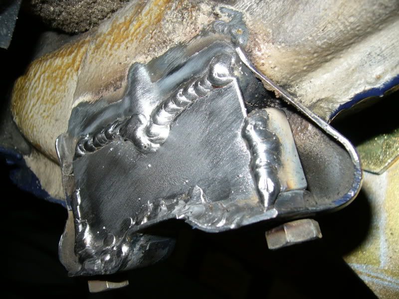 I used thin steel plate to create a 'butterfly' to try to triagulate the mount. Welded it up - new paint and a later Carrera bar. No breakie yet. Here you can see my mad welding skills... ![]()