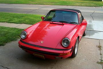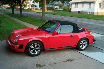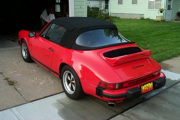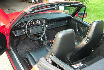 I finally have everything working on my 85 Carrera Cab. New machine to me about 6 weeks. Had to fix the radio then replaced it for better sound. Just got the electric door locks working. Various little things like Hood and Deck struts a new headlight lense and wipers. 72,000 miles - I am the third owner last guy had it 8 years. New yokohama DB tires. B&B stainless exhaust after the CAT. New custom made top has Herringbone underside but the interior is lined. Sorry I didn't vacuum the interior looks real bad in the picture. If anybody cares I had to give $18,500 the top, tires and exhaust were already done.