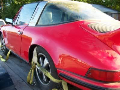 Ok, my turn. I have always wanted a 911 since I was probably 5. It was my first poster on my wall, which was a black 81 sc targa. I have looked for a long time, and found just what I wanted, for the most part. The price was right, noone on this forum would have past it by. No rust whatsoever, A/C installed at the port (although compressor is missing) but most of all a targa. Needs a possible engine overhaul, but runs great after it runs for a minute. I added the fuchs off ebay, and another good deal. Here she is. 76 911s targa (my birth year)