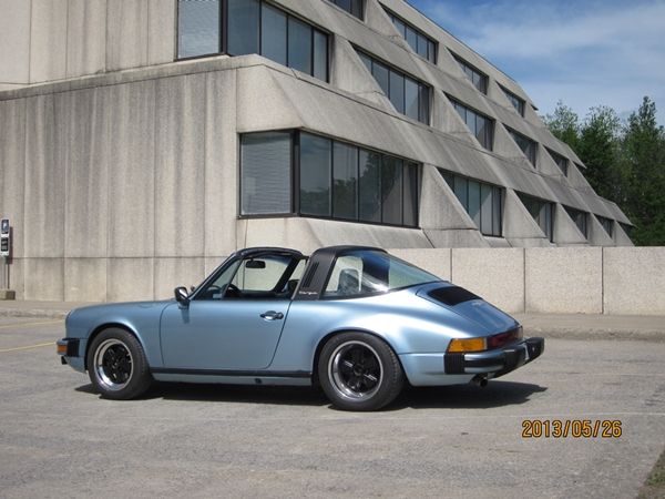 Just got this car last fall, but since then, I've installed rear 16x8 Fuchs, polished and painted all four wheels and put on new Michelin Pilot Exalto tires. The Targa is a wonderful thing on a day like this...