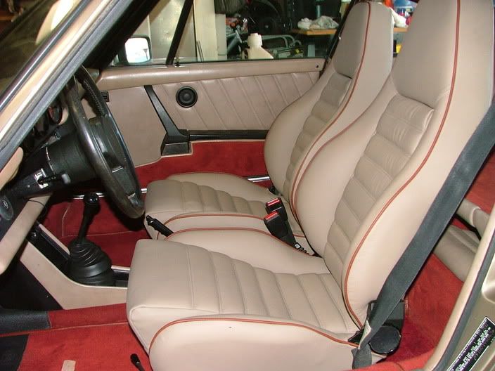Finally got my seats recovered. They were in extremely bad shape. Driver's seat leather was torn and worn through on both the seat bottom and backrest. Lots of dried up cracking on both seats. considered dying, but the needed repairs were substantial, and I thought it would look like crap in no time if I went that route. Had new covers installed in German leather matching exactly the original color and materials (GAHH). It was expensive, but I love the outcome.