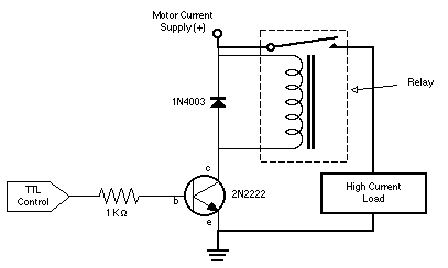Flyback: "One other consideration when using relays is the current spike created by the coil. When a coil of wire has current running through it, a magnetic field is created. This closes the contacts of the relay. When the current is removed from the coil, the magnetic field collapses and this causes current to flow through the wire until the magnetic field is completely collapsed or gone. This can cause a damaging voltage spike back towards the logic circuit. This is called flyback and is avoided in the above circuit with a flyback diode." From: http://www.acroname.com/robotics/info/articles/drivers/drivers.html Example: ![]()