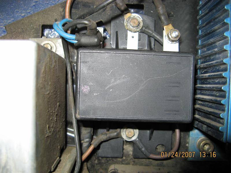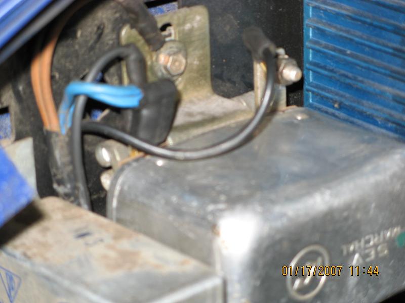 I'll also take a picture of the extra wiring, and do a little tracing - I was in a hurry this morning. It's added to the faston tab with the blue wires by using a piggyback male/female terminal, then goes down the same path as the blue wires, and into the folded metal base that holds the various pieces together. I can see something in there wiggle when I wiggle the black wire at the regulator, but I didn't investigate beyond that ... but I think that it goes to another insulated spade connection down in there. I'm trying really hard to avoid pulling the alternator if that's at all possible ... in case you hadn't noticed. I know that it would be good for me, but not this week, please. :-)
