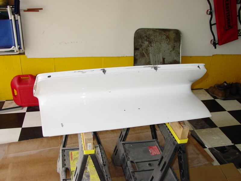I don't think it is necessary to remove all the paint, just use some flexible blocks and 80 grit and smooth it out then go over it with 100-120 and use progressively finer grits to smooth it out. Be real careful flat spots are bad. The mounting holes for the rubber look a little worn. You could JB weld a thin strip of metal reinforcement around the inner edge of the mounting edge, then drill the holes in the mounting strip, or just use large washers. Before you get started make sure you mount this on your car without the latch, just to ensure it fits and everthing lines up right. Good Luck. ![]() ![]()