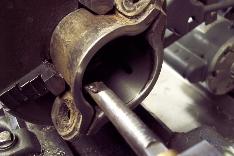 Otherwise, you might as well make the bushings "round" by using a broomstick wrapped in sandpaper. Lathing the bushing while they are outside the collars is useless. |