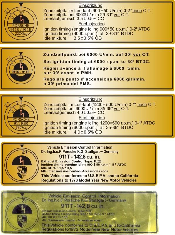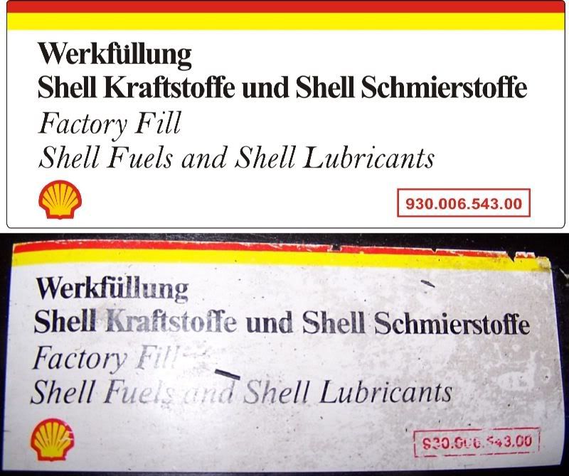 I was hoping you would take up the project again. This community is in need of these labels and as the cars age the need will only increase. My interest is in the Shell sticker. It goes on the hot air socket on a 1986 3.2L Carrera. it is 2"x5". My understanding this sticker changes frequently by model year so I cannot say what other years it is correct for. |