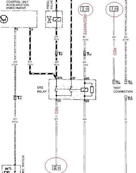 Refering to the factory wiring diagrams (part I, II, III, IV, V, & VI), here are some answers to your inquiries: 1. III-9...........this wire (red) goes to fuse #18 (5 A) not #16. 2. I-13...........this wire (red/white) goes to T1d (connected to #30 of the FP relay). WUR & AAR are also connected to T1d. 3. I-21...........goes to fuse #22 (25 A). Now to answer your question about I-13 / T1d............at 14-pin connector: The FP relay is mounted on the chassis while the WUR & AAR are mounted on the motor or engine, and when you removed the engine from the car, the common connector is the #10 pin (14-pin connector). I'm als in the middle of a project (SC engine into a '77S system) so we will be doing similar work. BTW, there is also a very good reference wiring schematics in the Bentley SC manual (page 970-8) and much easier to follow than the factory ones. HTH. Tony |