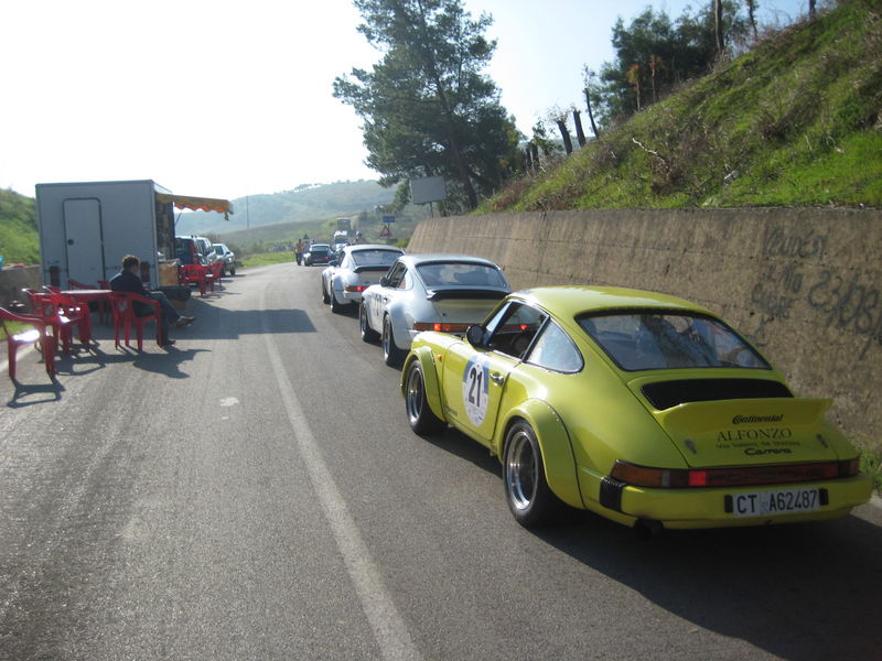 As i found out last year, Hillclimbing Sicilian Style - Taste of the Targa Florio there are few things more enjoyable than sitting on a hillside in the warm Sicilian sun, munching on a prosciutto and provolone pannini, drinking 'vino locale', hanging with 'paisano', and watching vintage racecars driven at speed through the countryside. If they happen to be 911's, even better. In Sicily, whole families come out for the day, as events like the Targa rally take on the same importance as going to church and watching football in the afternoon. Unlike in the US, where vendors serve greasy microwave corndogs, and $hitty fried dough or some other crappy product, along with overpriced watered down bud light (if you're lucky), here you have a choice of fresh fruit, olives or salami, proscuitto, parma or veal panninis, accompanied by your choice of wine, beer, cappucchino or espresso, if you prefer good sir. They have truly refined and elevated watching motorsports to a fine art.