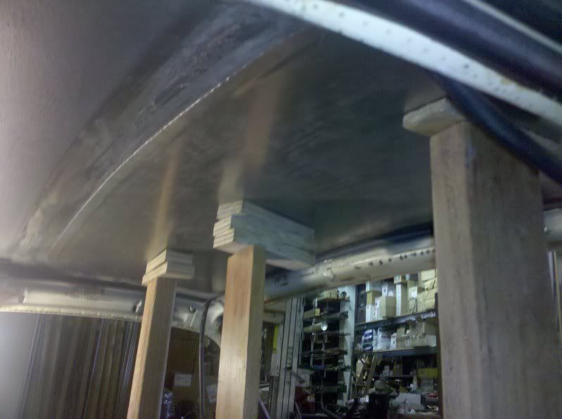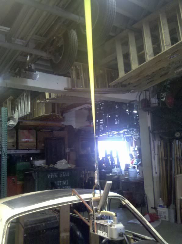 Here's what happened. After the removal of all the asociated sunroof parts, false roof and trimming with a cutoff wheel we were left with the raw opening. ![]() ![]() ![]() ![]() ![]() ![]() I pondered the best way to fill the hole and contacted Chris from Fenn Lane in jolly old England. I had seen previous posts and recalled Chris' method. Chris sent a beautifully crafted panel of the proper gauge sheet metal with the appropriate compound curves made on the English wheel. The panel is flanged and fits perfectly in to the sunroof opening. Chris said that he spot welds the panel into place so I thought I'd follow that idea since I have a spot welder. ![]() Panel supported from below with 2 x 4's. ![]() Spot welder suspended to aleviate fatigue. ![]() ![]() Continued below.