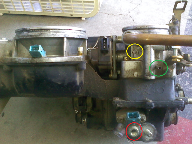 edit: checked for vac. leaks thoroughly - carb cleaner on ANYTHING that has to do wit ha vacuum. all vac lines, all intake runners (tops and bottoms) all check out - absolutely zero fluctuation with the idle. do i have my dedicated vacuum hose hooked to the right spot? Yellow circle = vacuum line coming off left side of distributor(as if facing the rear of car) blue circle - where i have my dedicated line to the Fuel Pressure Regulator red circle - random hole in cold start valve - do i need to plug? http://i646.photobucket.com/albums/u...g?t=1312425094 |