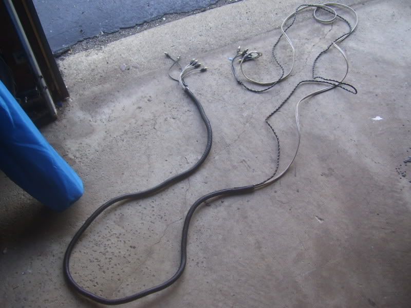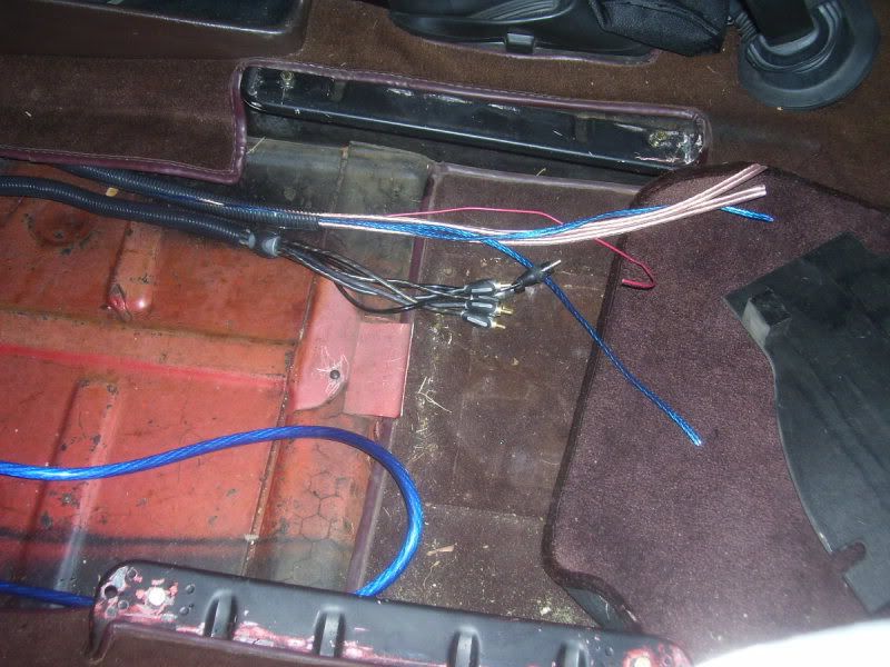 next on the list was putting the 6 rca lines and 4 sets of speaker wire into looms then running them. i used a normal set for the sub input and a dual set for the comps up front. 16g wire for the tweets (blue), 12g for the mids (clear).